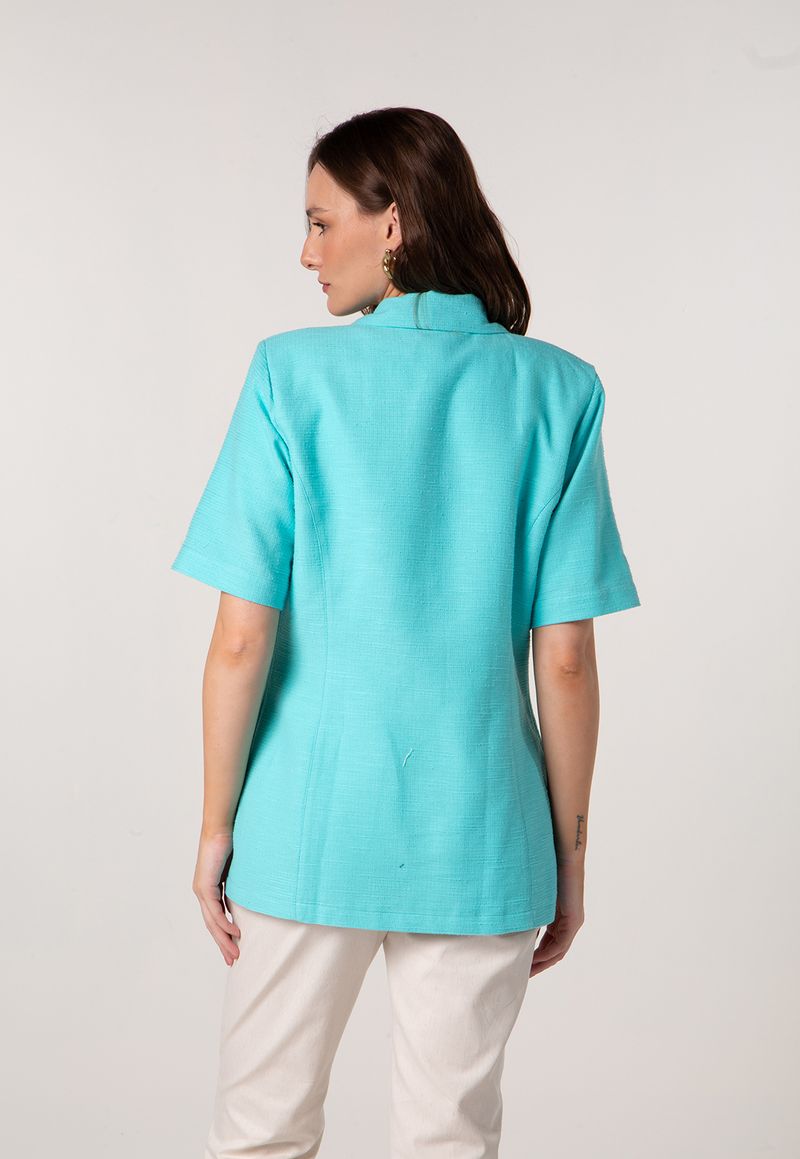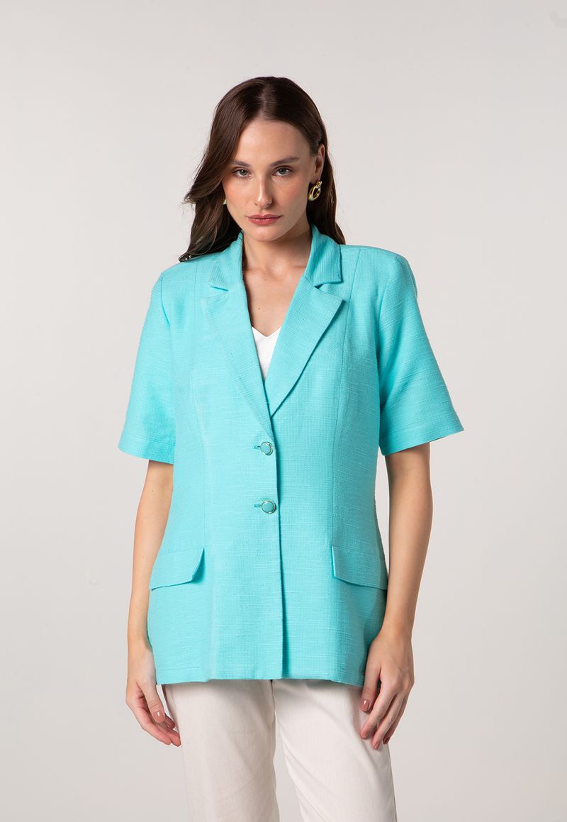 Com modelagem impecável, mangas curtas e fechamento frontal por botões, o blazer combina estilo e conforto em qualquer ocasião.