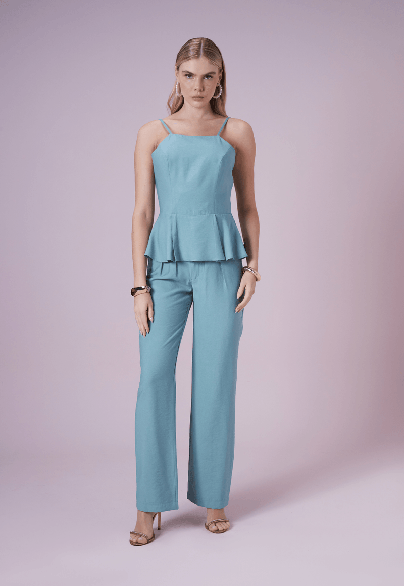 A blusa peplum traz delicadeza e sofisticação para produções versáteis. Com alças finas e decote reto, valoriza a região do colo de forma discreta e elegante. O detalhe peplum cria movimento e leveza ao look, realçando a cintura e garantindo um caimento refinado.