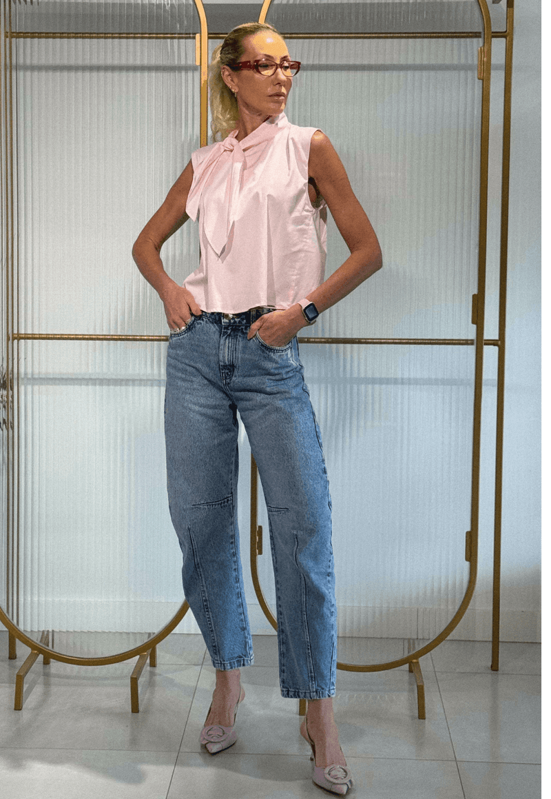 A lavagem em tom médio adiciona versatilidade à peça, tornando-a ideal para compor tanto produções casuais quanto looks sofisticados com um toque contemporâneo. Um jeans único, que alia estilo e conforto em cada detalhe.