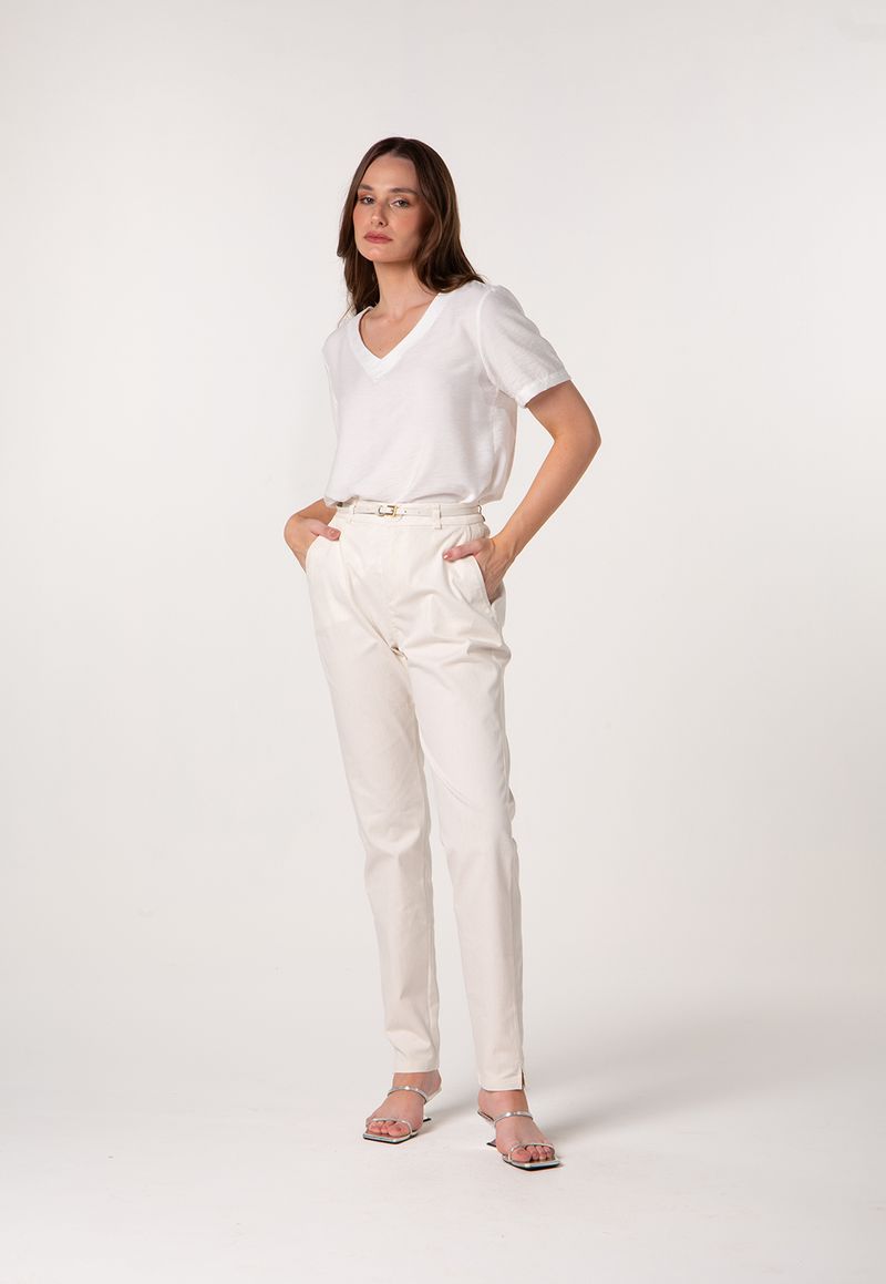 Ideal para produções versáteis, vai do casual elegante à composição urbana em looks monocromáticos. O tecido com mistura de fibras naturais proporciona caimento suave e toque macio, ideal para os dias quentes da temporada.
