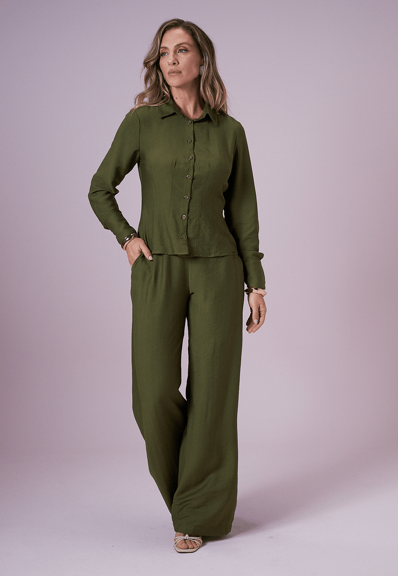 A calça lisa cintura alta é a peça ideal para quem busca elegância prática no dia a dia. Sua modelagem reta com cintura marcada alonga a silhueta e garante caimento impecável. O design clean ganha funcionalidade com bolsos laterais discretos, que mantêm a proposta sofisticada ao mesmo tempo em que oferecem praticidade.