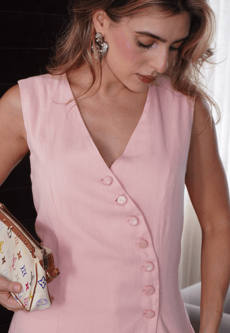 O conjunto cropped e calça sorvete traz modernidade e feminilidade em perfeita harmonia. O cropped estruturado, com botões forrados, valoriza a silhueta e adiciona sofisticação ao visual, enquanto a calça de caimento reto completa a proposta com praticidade e elegância.