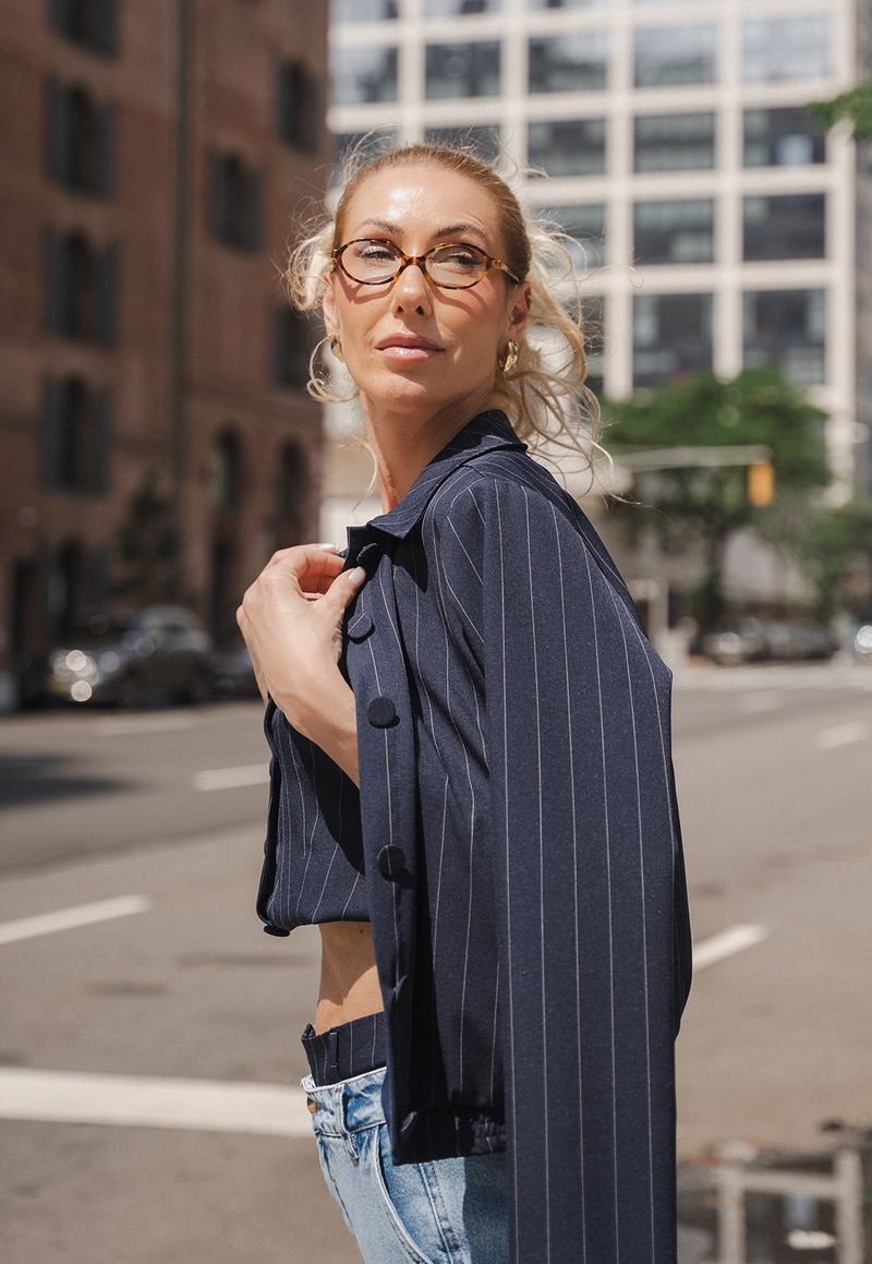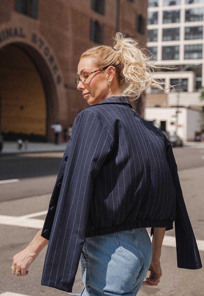 A jaqueta risca de giz traz a elegância atemporal da alfaiataria para uma proposta contemporânea e versátil. Com modelagem levemente solta e acabamento estruturado, a peça equilibra sofisticação e conforto, ideal para composições alinhadas e cheias de personalidade.