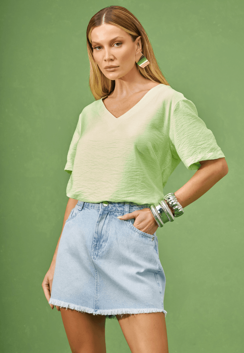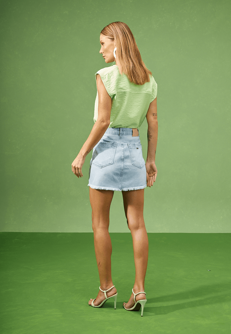 Versátil e atemporal, combina facilmente com t-shirts, blusas leves ou camisas, compondo produções que equilibram feminilidade e estilo urbano.