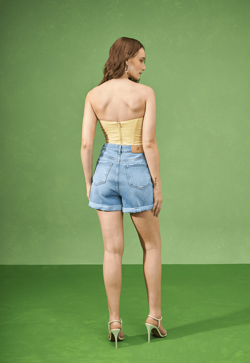 O Shorts Amanda é a escolha ideal para looks descontraídos com estilo. Com modelagem ampla e cós alto, ele proporciona conforto e valoriza a silhueta de forma descomplicada. A barra dobrada confere um toque moderno e jovial à peça, elevando o visual básico com um detalhe sutil.