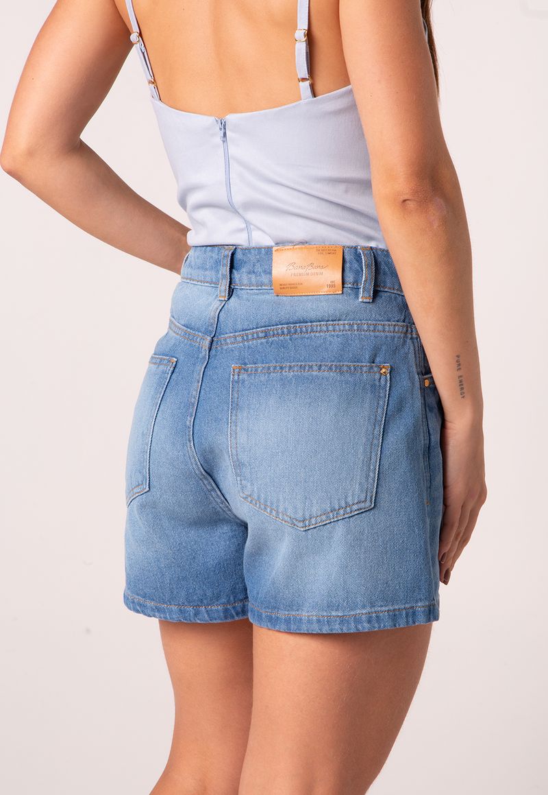 O Shorts Jeans Amanda com lavagem média é a peça curinga para os dias quentes com estilo atemporal. Com caimento soltinho e cintura alta, ele valoriza a silhueta com conforto, sendo perfeito para produções casuais e descomplicadas.