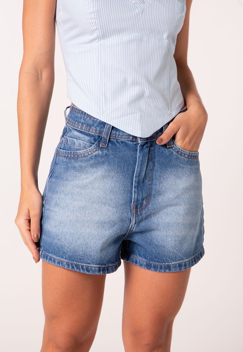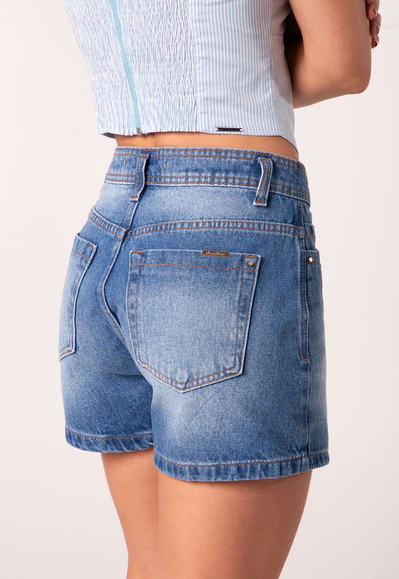 O shorts jeans com cintura alta e cinto é a escolha certa para composições práticas com personalidade. Com modelagem reta e comprimento equilibrado, a peça valoriza a silhueta com conforto e estrutura. O cinto em material sintético com fivela encapada adiciona sofisticação ao visual e reforça o estilo utilitário moderno.