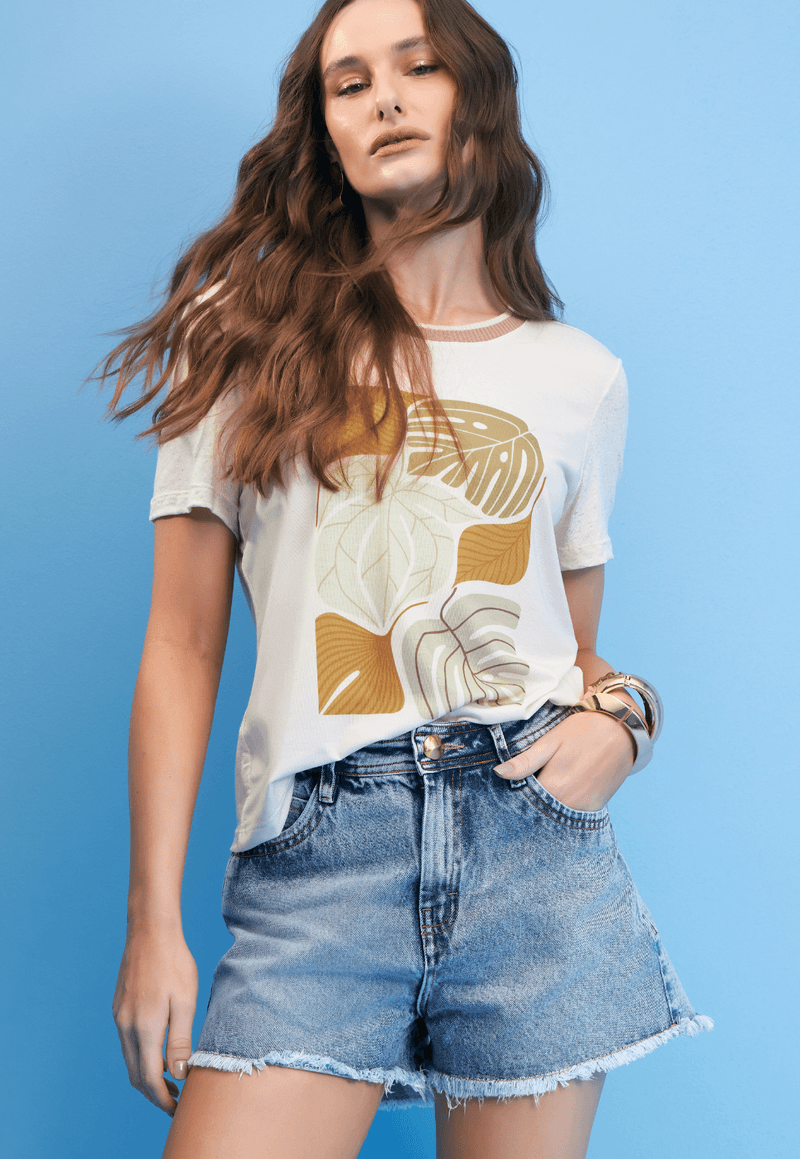 A barra desfiada confere um toque moderno e despojado à peça, perfeita para compor looks urbanos e frescos nos dias mais quentes.