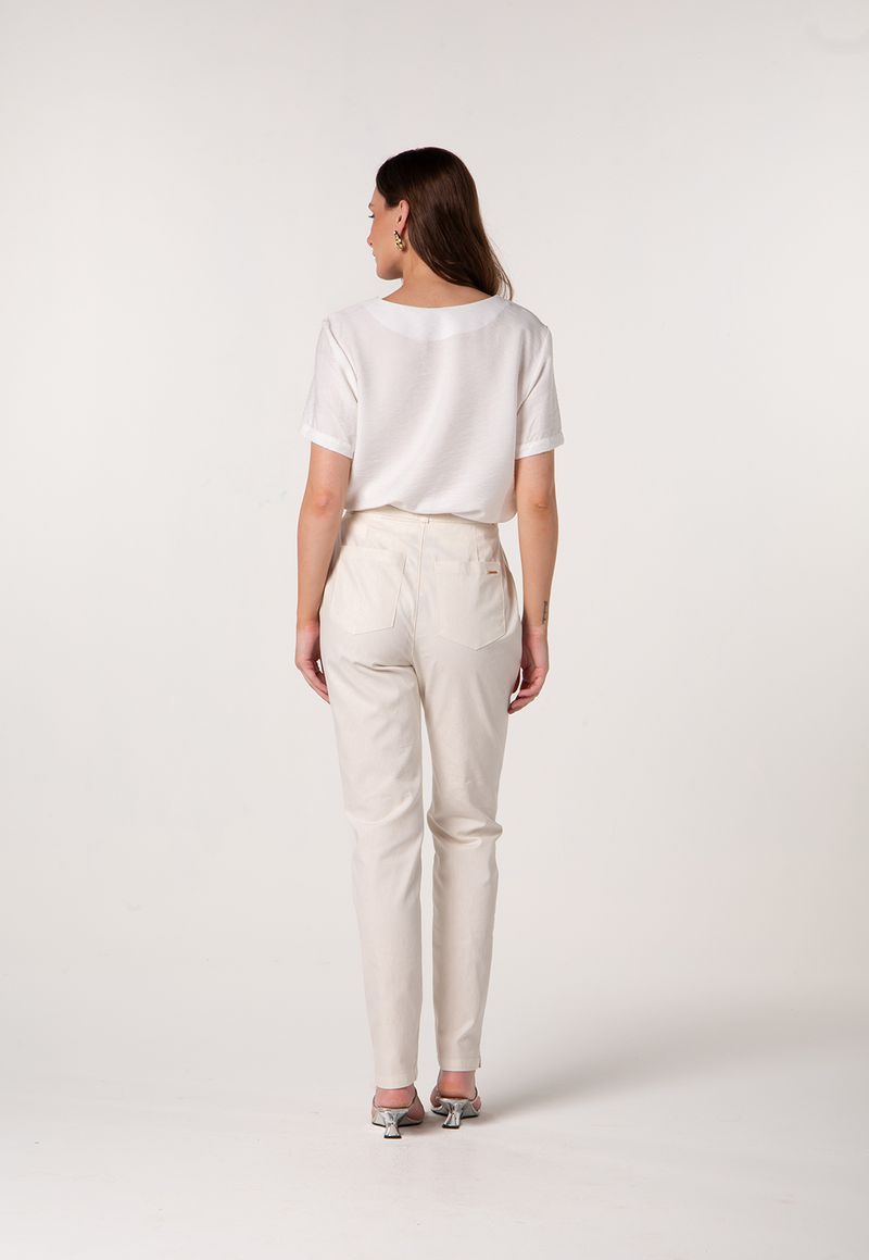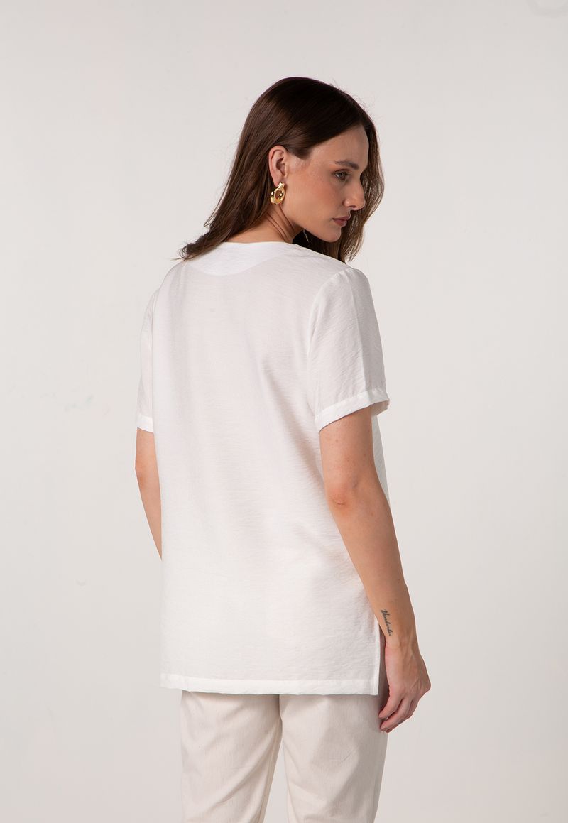 A t-shirt alongada com decote V é a peça essencial para composições descomplicadas com toque elegante. Com modelagem solta e comprimento levemente alongado, ela proporciona caimento fluido e conforto ao longo do dia. O decote em V alonga a silhueta e adiciona feminilidade ao visual, enquanto o tecido com textura leve garante frescor e sofisticação discreta.