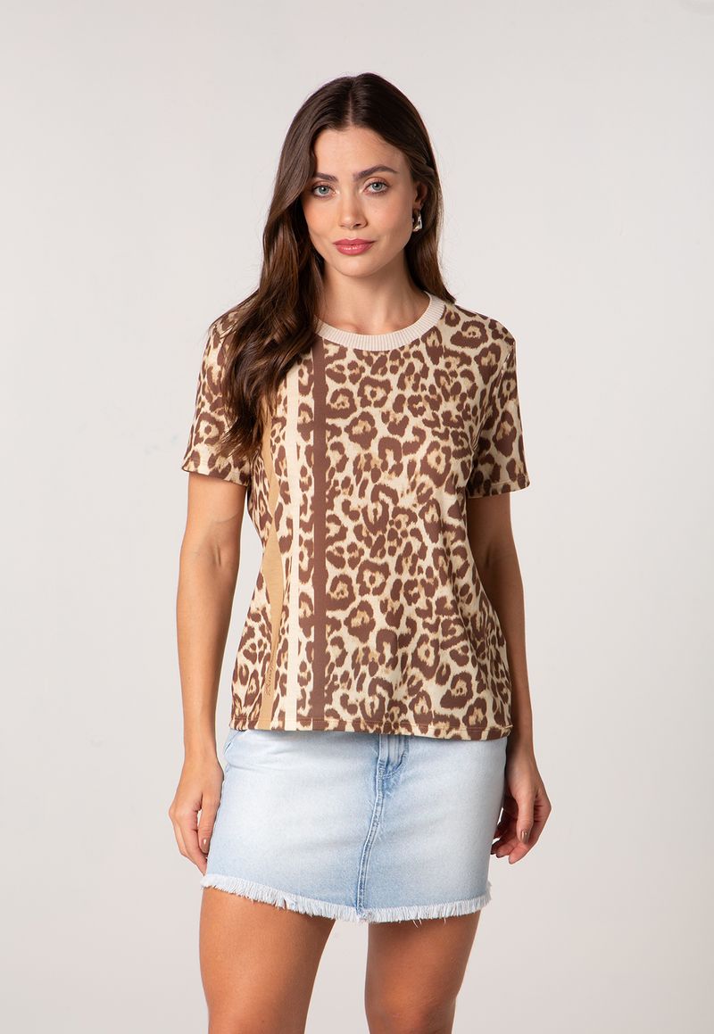Confeccionada em malha suave com leve elasticidade, essa t-shirt une conforto e estilo em uma proposta descomplicada. A estampa em tons terrosos adiciona um ponto de interesse ao visual, enquanto a modelagem reta com mangas curtas oferece um caimento leve e versátil para diferentes ocasiões.