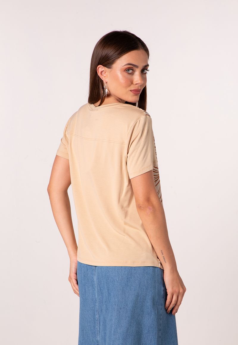 Decote redondo e modelagem levemente soltinha