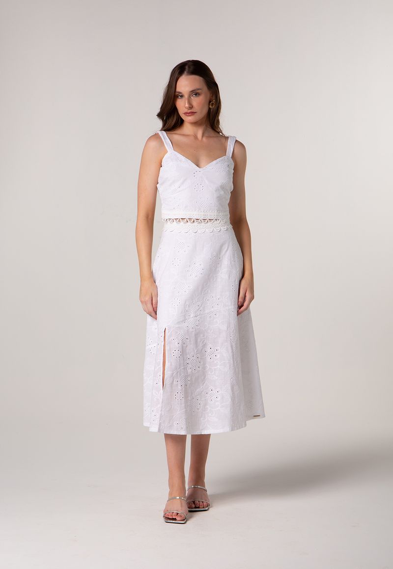 • Recorte vazado na cintura com detalhe vazado em renda